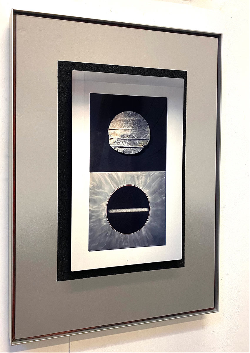 Metallic photo print, acrylic, carbon, acrylic urethane, wood and aluminum on panel.